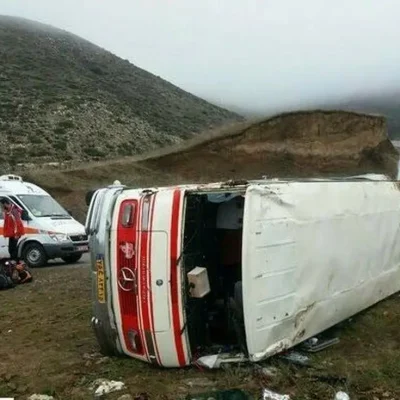 12 نفر مصدوم در پی واژگونی یک دستگاه مینیبوس در استان اردبیل
